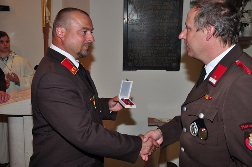 Am 5. Mai 2013 feierten wir in der Pfarrkirche unsere traditionelle Florianimesse. Nach der von Pfarrmoderator DDr. Patrick Nworgu zelebrierten Messe, bei deren Gestaltung wir uns entsprechend einbrachten, wurden folgende Kameraden ausgezeichnet: