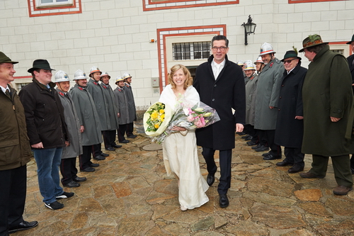 Am 31.Dezember 2013 heiratete unser Kamerad EBI Johannes Wiesmayer. Wir überraschten das Brautpaar mit einem Ehrenspalier. Kommandant OBI Ing. Peter A. Stahl und Stellvertreter BI Erich Heindl gratulierten im Namen der Mannschaft und überreichten einen Blumenstrauß. Das frisch gebackene Ehepaar freute sich sehr über dieses unerwartete Geschenk und die Gratulation.