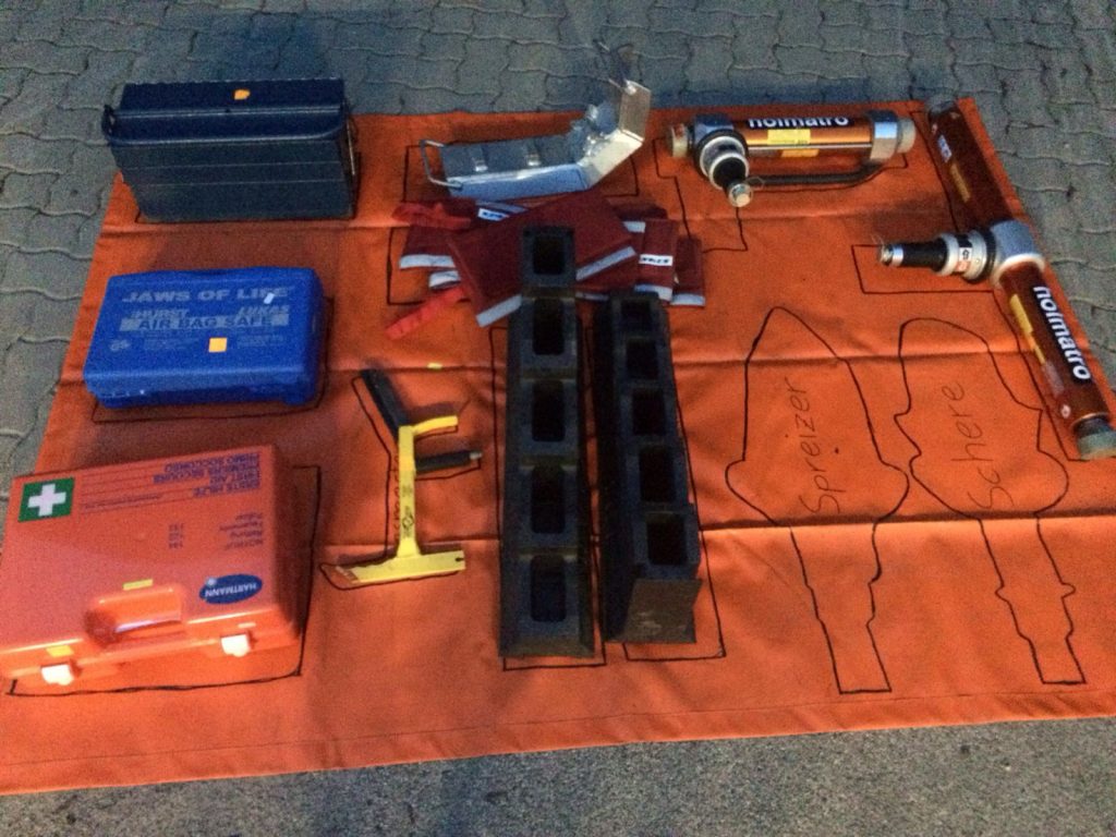 Inhalt der Übung am 15 September 2016 war es, die Anwendung des hydraulischen Rettungsgerätes (Schere, Spreitzer, Stempel, …) zu wiederholen und zu festigen.
