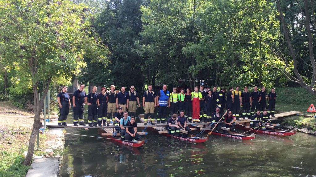 Abfahrt war bei unserem Feuerwehrhaus schon um 6:30 um rechtzeitig um 7:00 in Maria Enzersdorf zu sein. Nach einer kurzen Lagebesprechung verlegte der 1. Zug nach Eggendorf im Bezirk Wr. Neustadt. Übungsannahme war ein Hochwasserereignis, wobei in 4 Stationen unterschiedliche Maßnahmen getroffen wurden. Es wurden diverse Arbeiten an Dämmen geübt, ein Schwimmsteg aus Zillen errichtet, sowie Verbindung unterschiedlicher Holzelementen mittels Knoten und Bünden demonstriert.