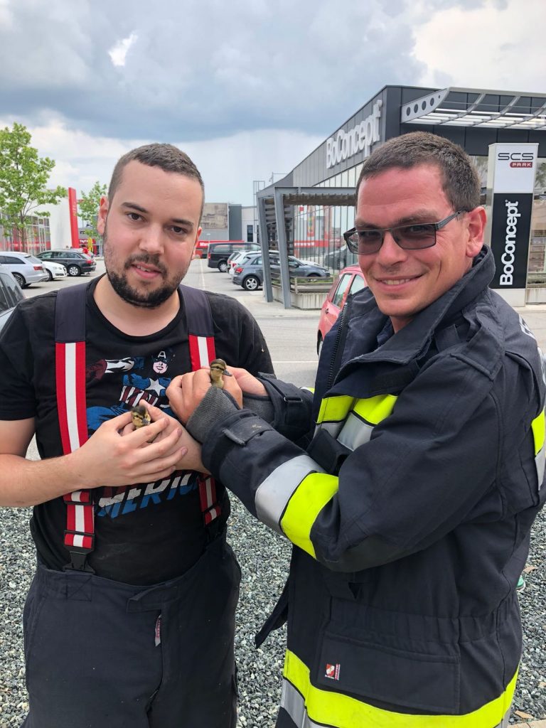 Gegen 15:29 wurden wir zu einer Tierrettung alarmiert, da zwei Entenküken in einen Kanal gefallen waren. Nachdem den beiden Küken geholfen worden war, konnten 10 weitere Küken inklusive der Entenmutter in unmittelbarer Nähe gefunden werden.