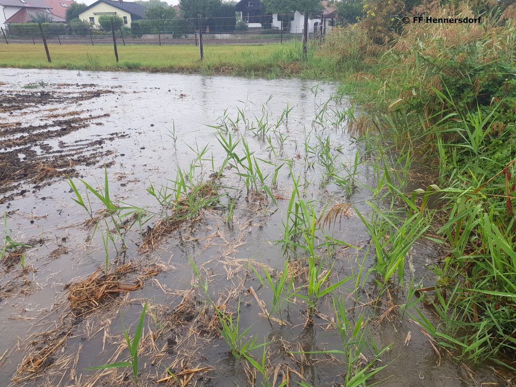 Aufgrund intensiver Niederschläge während der Nachtstunden von Freitag auf Samstag war am Samstag, den 1. September der Pegel des Petersbachs auf einem gefährlichen Stand. Auf Höhe der Josef Postl Gasse trat der Bach bereits in einem kleinem Bereich über sein Ufer.