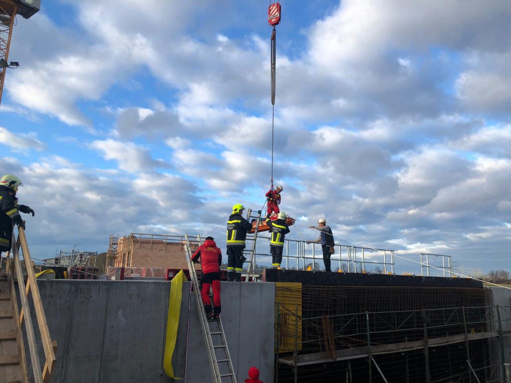 Gemeinsam mit den Kameraden der FF Achau konnte die Person mittels Schleifkorbtrage, die an einem Baukran befestigt worden war, gerettet werden.
