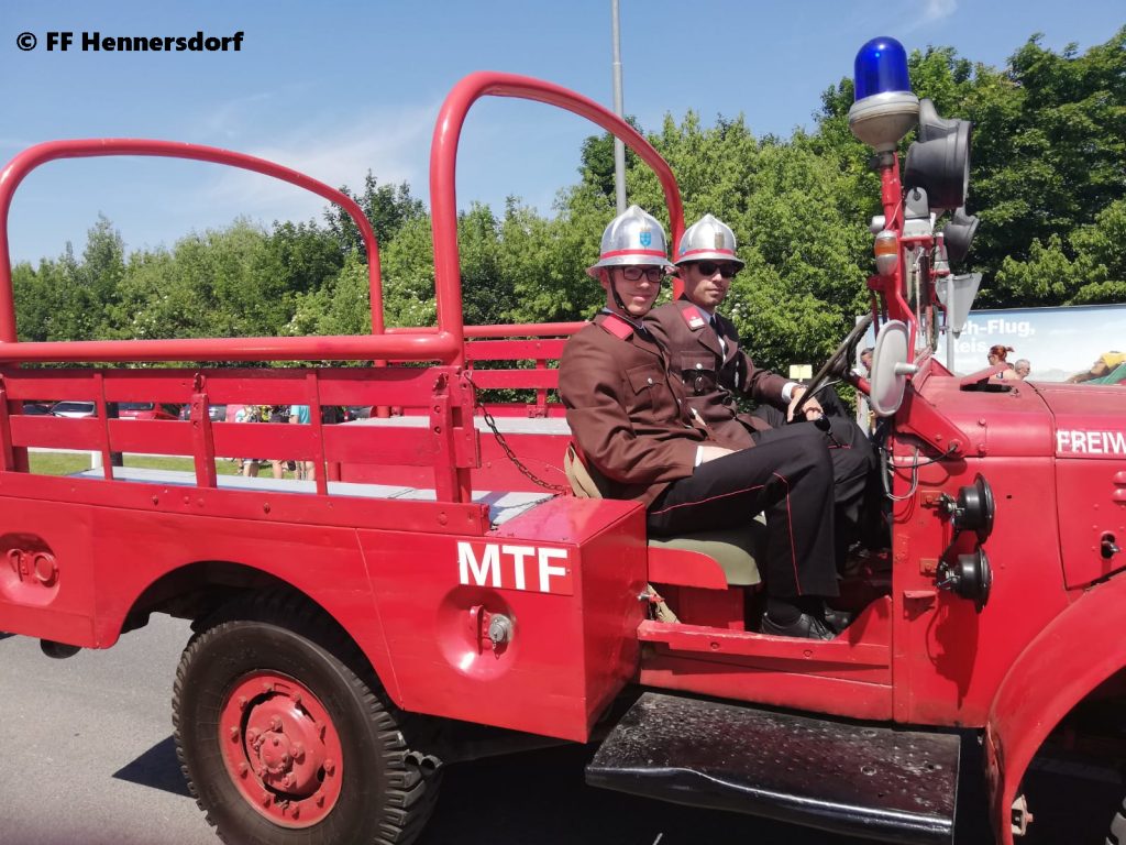 Im Zuge des 120-jährigen Jubiläums der Freiwilligen Feuerwehr Matzendorf veranstaltete diese einen Festzug, bei dem historische Feuerwehrfahrzeuge zur Teilnahme geladen waren. Von der FF Hennersdorf nahmen BM Paul Reiter und PFM Stafen Miedler mit unserem Dodge teil. Anbei eine kleine Fotogalerie mit Eindrücken vom historischen Festzug: