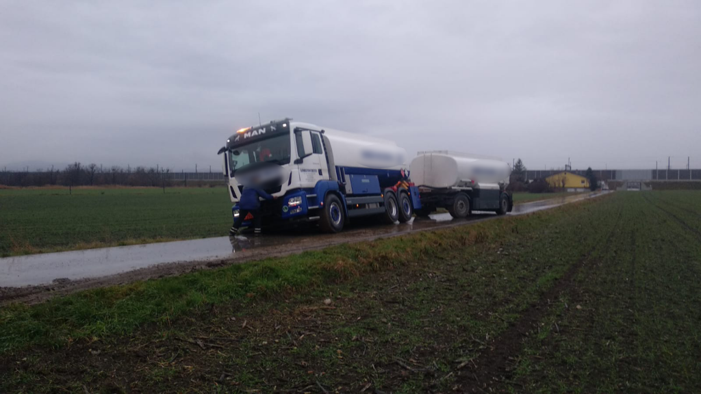 Gemäß den aktuellen COVID-19-Vorgaben rückte nur ein Fahrzeug mit sechs Mann zum Einsatz aus. Vor Ort bot sich folgendes Lagebild: Ein Tank-LKW mit Anhänger war von der rutschigen Fahrbahn abgekommen und leicht in den Graben gerutscht. Der LKW-Fahrer hatte den Tankinhalt des LKWs schon vorsorglich in den Anhänger umgepumpt, der sich noch auf der Fahrbahn befand und der vom Zugfahrzeug auch bereits abgekoppelt war. Aufgrund dieser Vorarbeiten konnten wir den Einsatz rasch abarbeiten und den LKW mittels Seilwinde vom Rüstlöschfahrzeug wieder auf die Fahrbahn ziehen.
