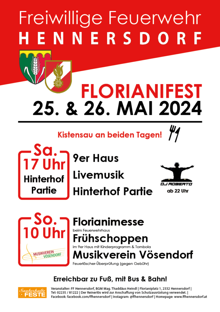 Am 25. & 26. Mai findet unser diesjähriges Florianifest statt.